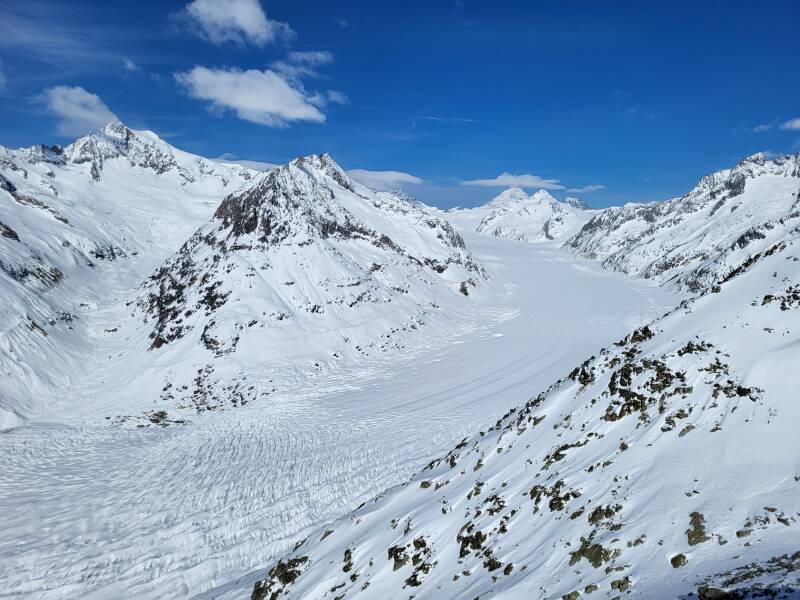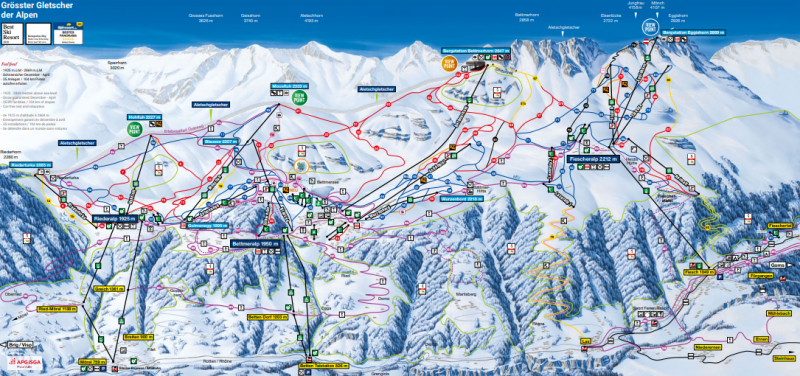 Informations utiles : afin de profiter au mieux de votre expérience sur le domaine de l'Aletsch Arena, munissez-vous du "Aletsch discover pass" au prix de 55 chf par adulte (moitié prix avec abonnement CFF) afin d'avoir accès à toutes les remontées mécaniques en tant que piéton, que vous pouvez réserver en avance sur ce site : Passeport découverte Aletsch – Carte journalière Aletsch Arena. Par ailleurs, il est intéressant de se rendre sur ce spot en transports en commun, afin d'aller au plus loin le matin, et de rentrer le soir par une autre gare. Tout le domaine est très bien desservi par bus ou par train. En été, il est possible de partir avec un guide en excursion sur le glacier, crampons aux pieds et encordés : Randonnée sur le grand glacier d'Aletsch (aletscharena.ch)